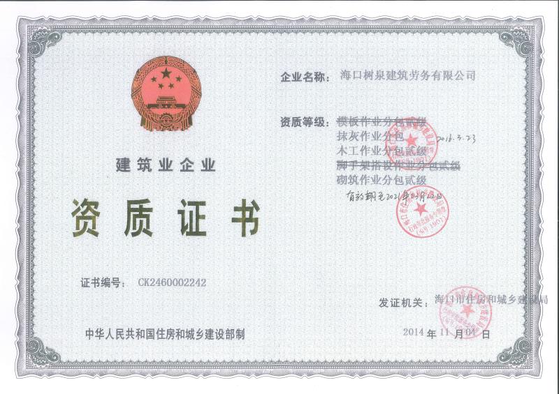 ??跇淙ㄖ趧沼邢薰境闪⒂?011年,公司位于??冢淝吧硎且患覍I建筑施工隊,自2004年即開始在海南從事建筑勞務施工。自成立至今,公司已經擁有一支科學管理、質量過硬、能打硬仗,搶工期的專業隊伍。能獨立承擔大中型工業與民用建筑 、室內外裝修、各類機電設備安裝工程。代表工程有海口濱海華庭、三亞時代海岸T01/02/04/05棟高層、合肥東?;▓@二期、陵水富力灣B區高層、三亞金中海(酒店)、瓊海大印經典花園、??诃h球海景大酒店(四星級酒店,在建中)、陵水珍珠大廈(五星酒店)、海口萬達廣場、美蘭機場二期。